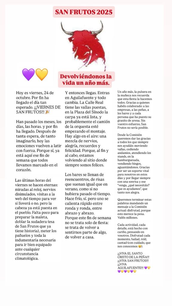 SAN FRUTOS 2025, DEVOLVIÉNDONOS LA VIDA UN AÑO MÁS